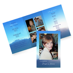 Our beautiful Tri-fold programs are the perfect way to share memories, celebrate life and provide important information to guests. Our Tri-fold programs have an extra panel compared to the Bi-fold. With a total of 6 pages, the Tri-fold programs have extra space for even more photos and text. The Tri-fold program has a finished size of 6”x9” and is printed on high quality 10pt Card stock with a satin finish. Your programs will come folded and ready to hand out and display. These Memorial Programs are a beautiful keepsake of your loved one, for family and friends to save and cherish for years to come. Choose between dozens of beautiful designs and the perfect layout that fits your service.