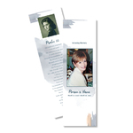 Bookmarks are keepsake that family and friends will treasure for years to come. You can choose a design to match your programs, or select a totally different design. Printed on high quality 14pt Card stock, with a semi gloss finish.