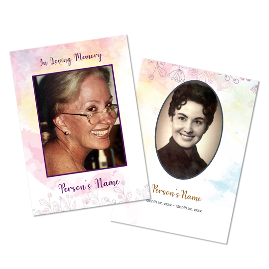 Wallet Cards are a pocket size keepsake that family and friends will treasure for years to come. You can choose a design to match your programs, or select a totally different design. Printed on high quality 14pt Card stock, with a semi gloss finish.