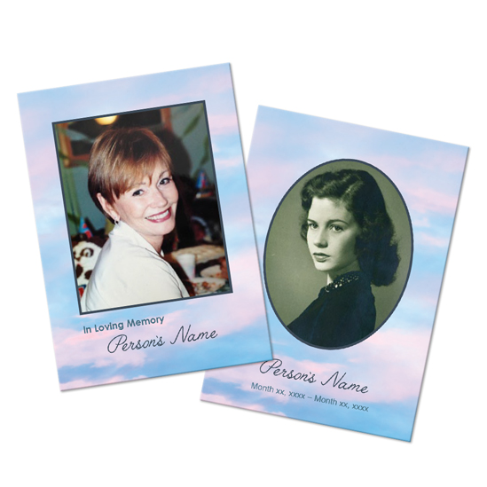 Wallet Cards are a pocket size keepsake that family and friends will treasure for years to come. You can choose a design to match your programs, or select a totally different design. Printed on high quality 14pt Card stock, with a semi gloss finish.